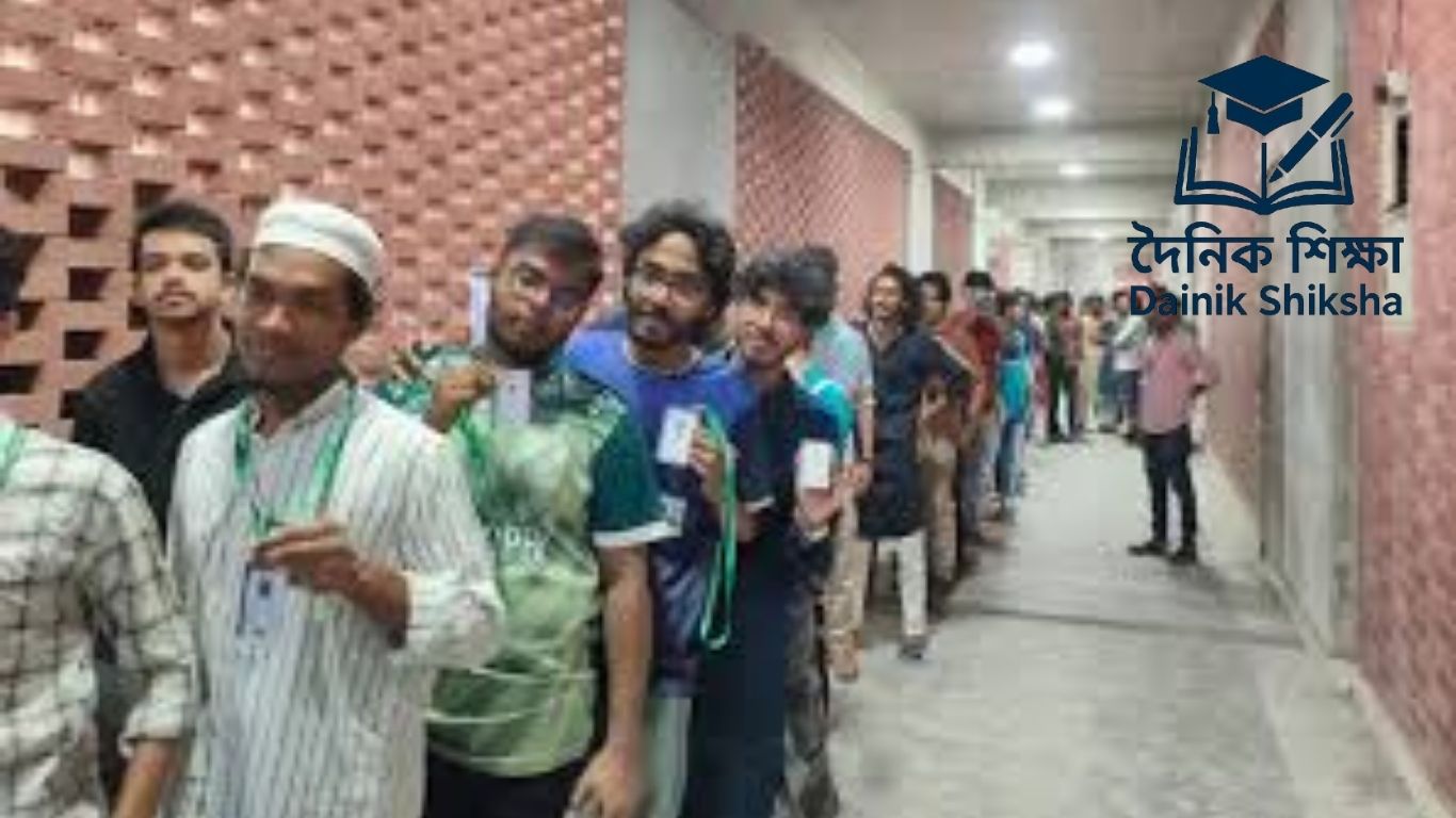 লাইনে দাঁড়ানোর পর প্রায় ২০ মিনিট সময় নিয়ে শিক্ষার্থীরা ভোট দিচ্ছেন।